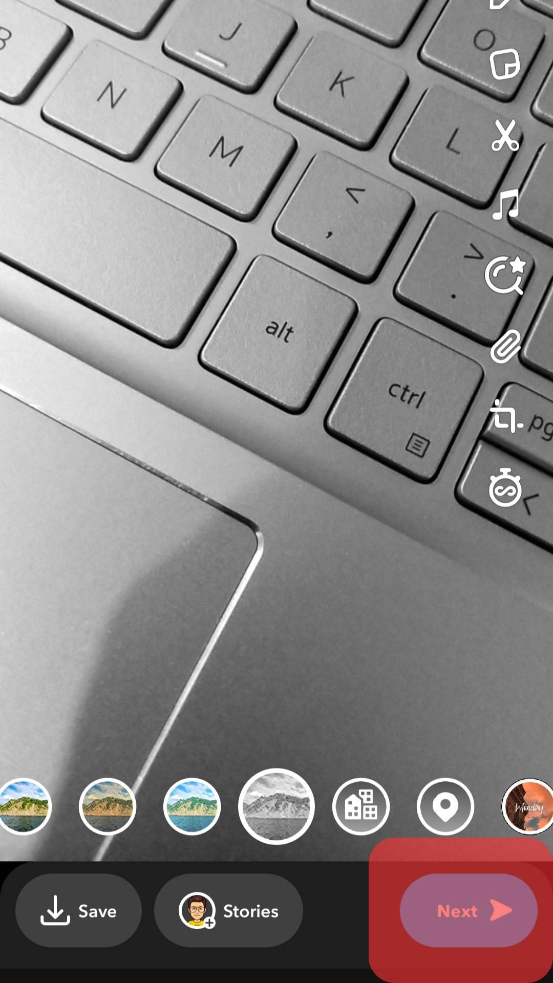 2. Next, launch the Snapchat app and take a snap as you would love to, add geo-filters, and make all the edits you want to do. Then tap on the right arrow to continue.Take A Snap And Click On Next Icon