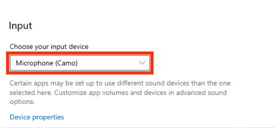 - From the “Device” option, select the output device you selected on Discord. Then close the window.