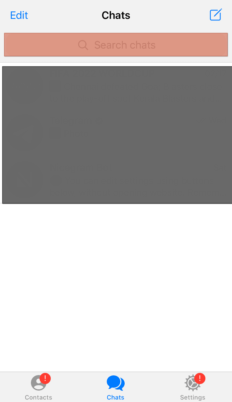 2. Swipe down on the main screen downwards to reveal the search bar.Telegram Search Bar