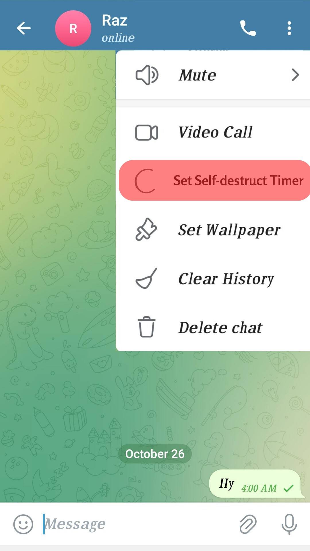 - Once you enter Secret Chat mode, click on the “Set Self-destruct Timer“.