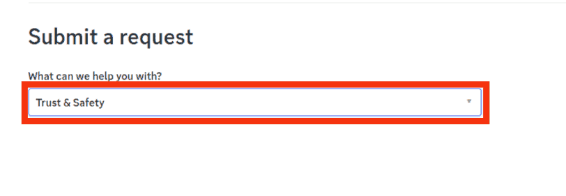 - Select “Trust & Safety” under the “What can we help you with?” question.